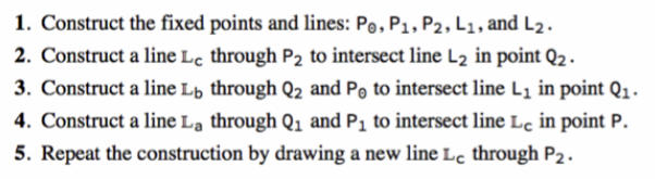 This graphic shows the conic formed from two points, a line, and two planes according to an